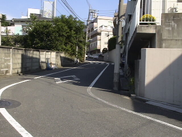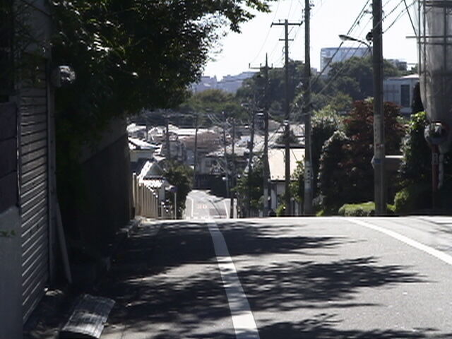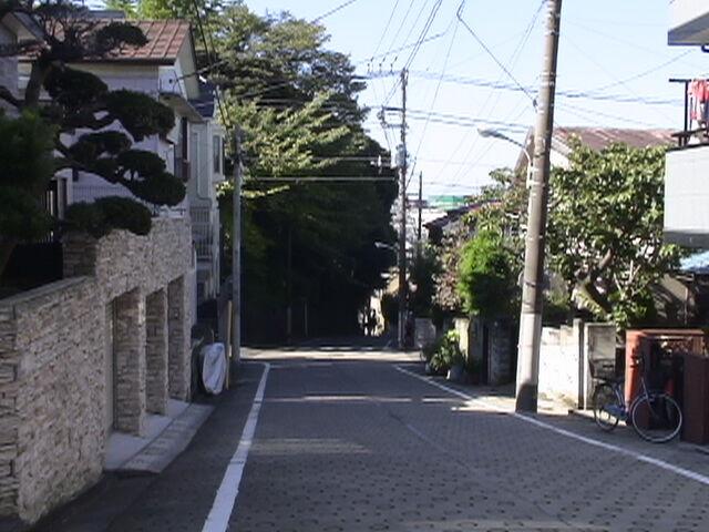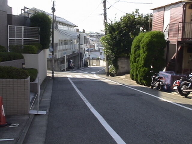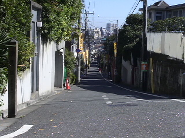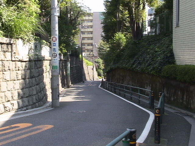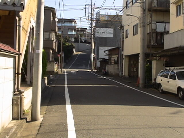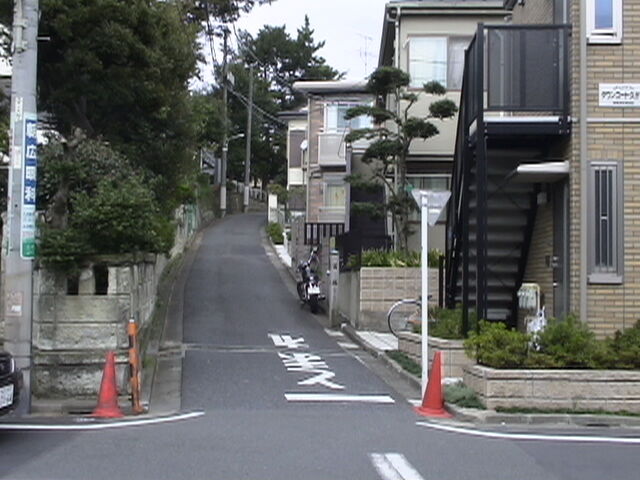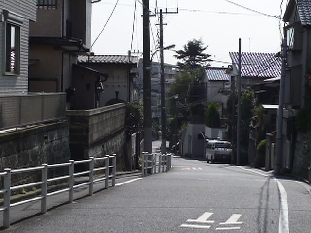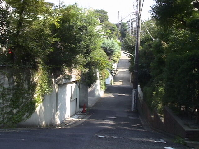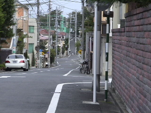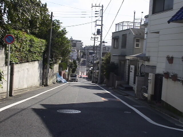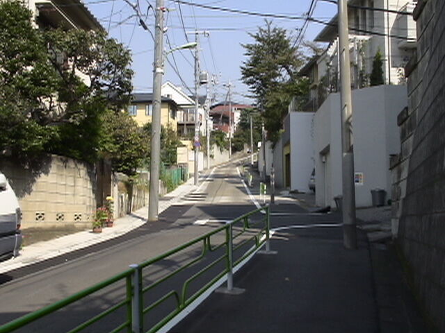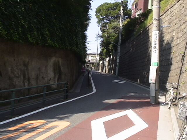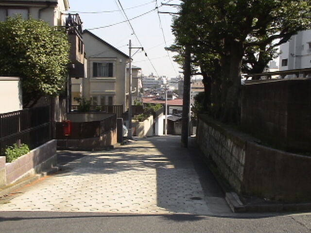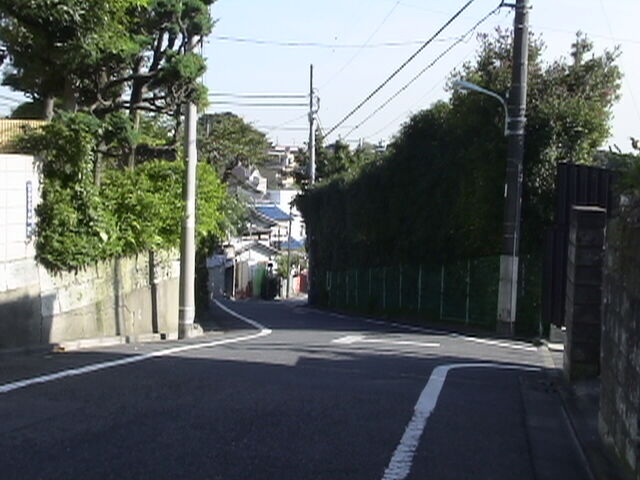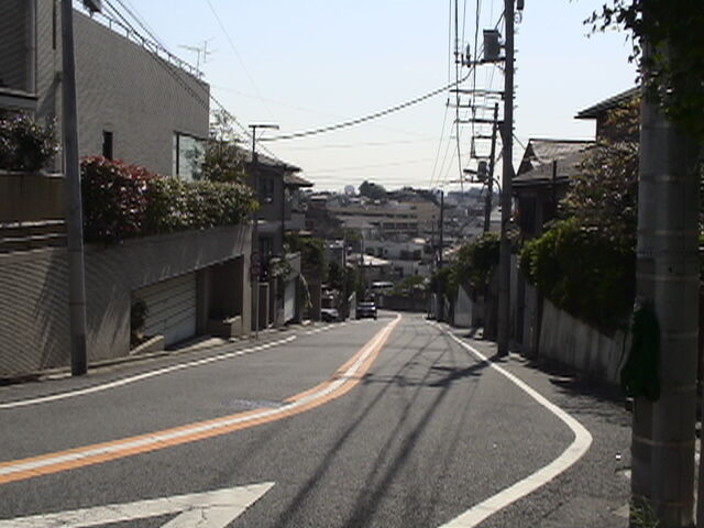 宮坂(坂上方向) 久が原2-18と2-19の間を北に上る。《地図》
