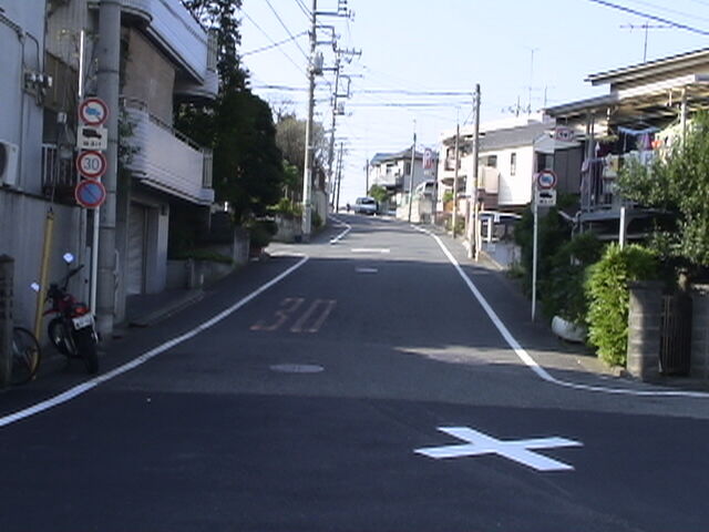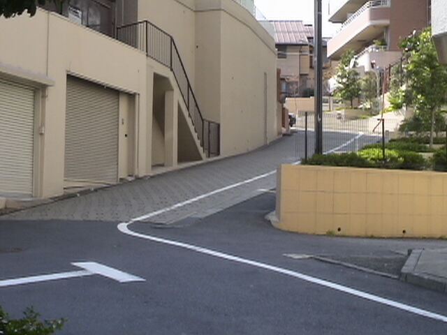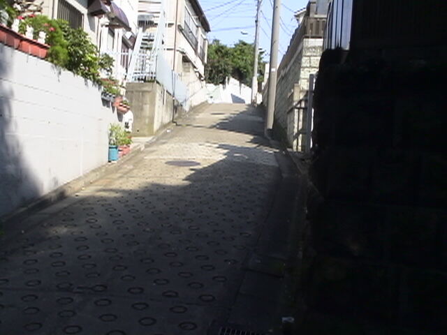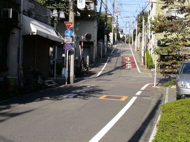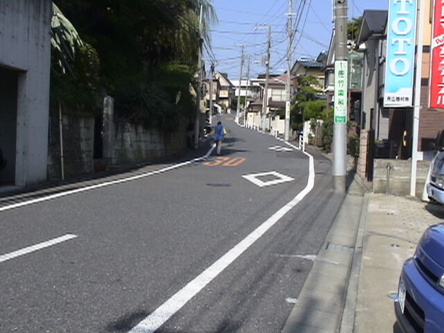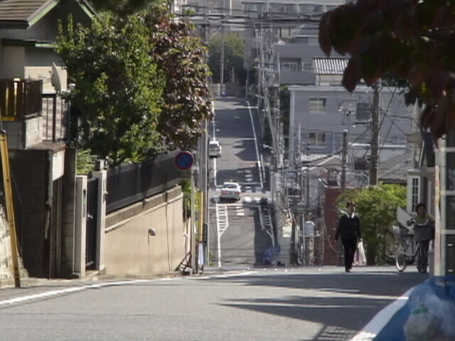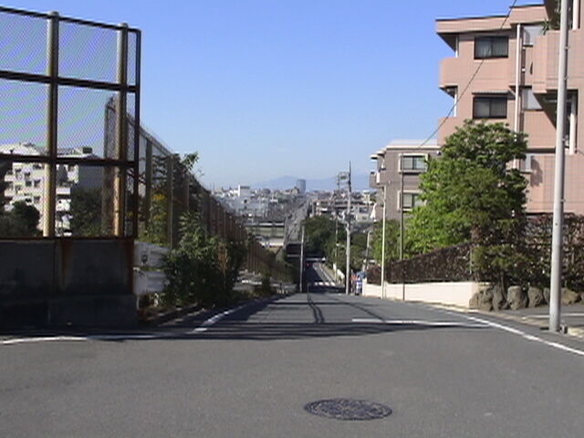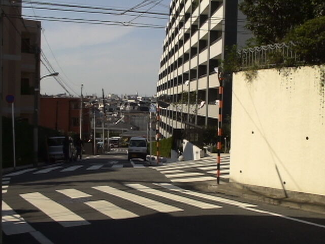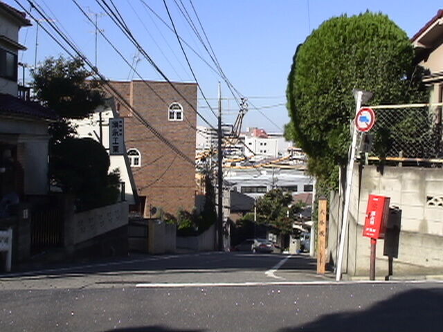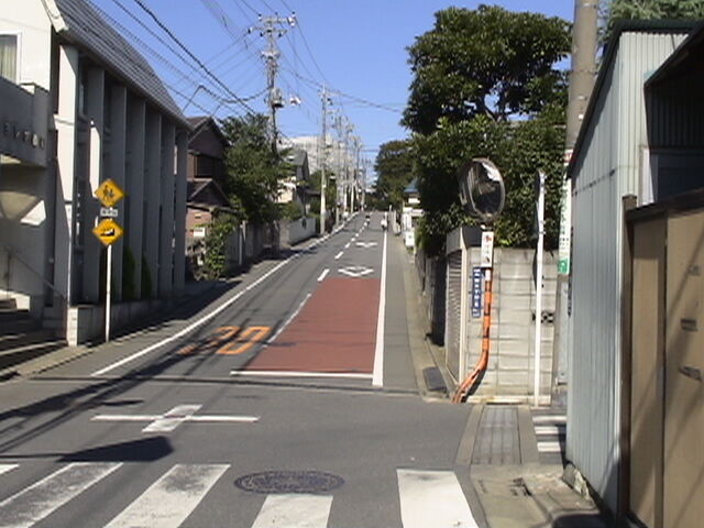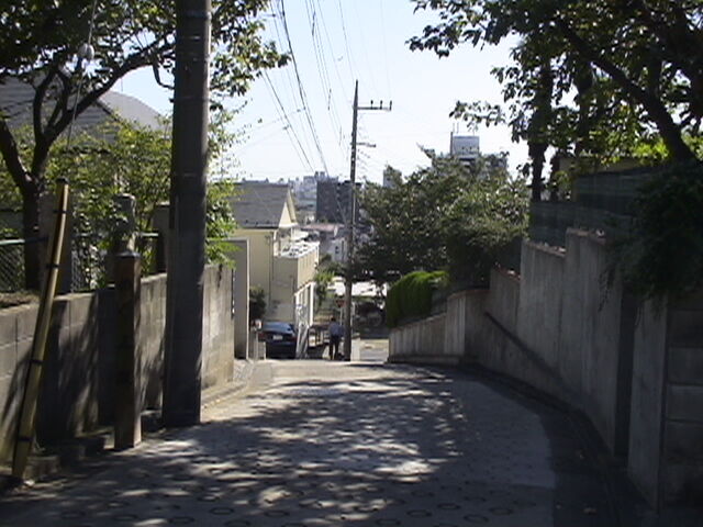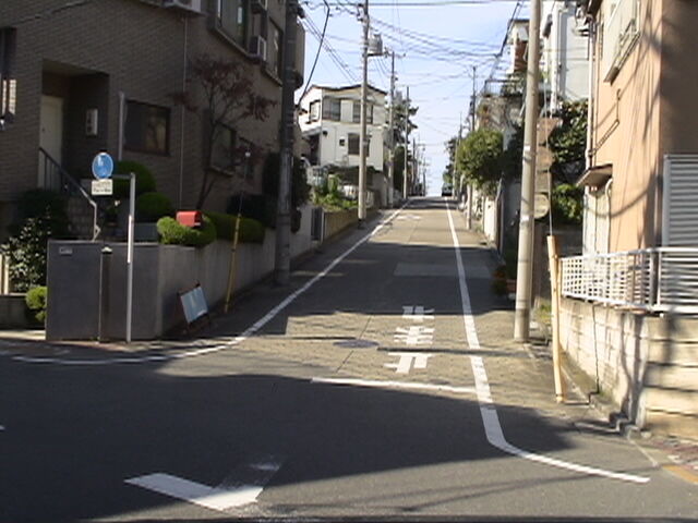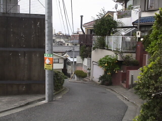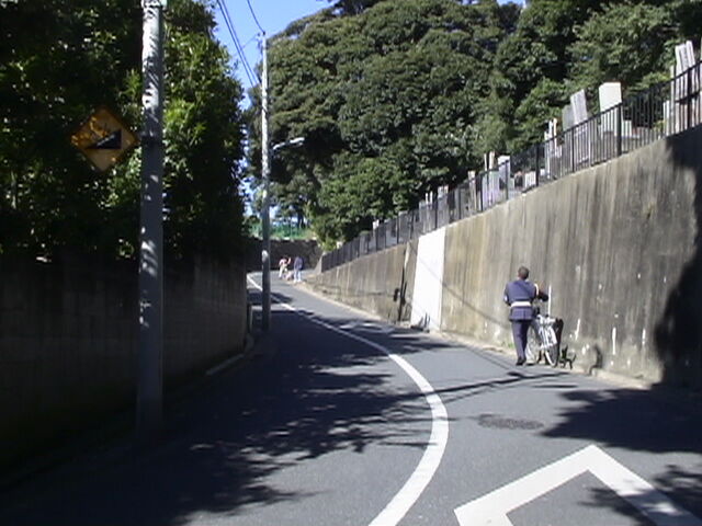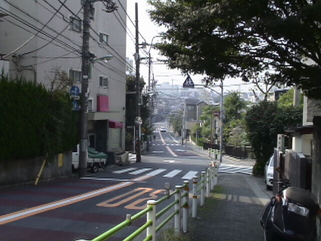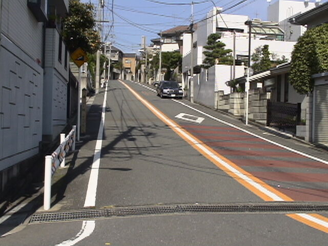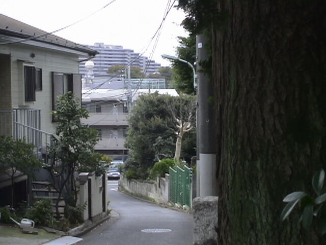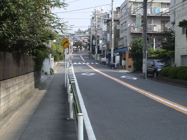 宮坂(坂上方向) 久が原2-18と2-19の間を北に上る。《地図》