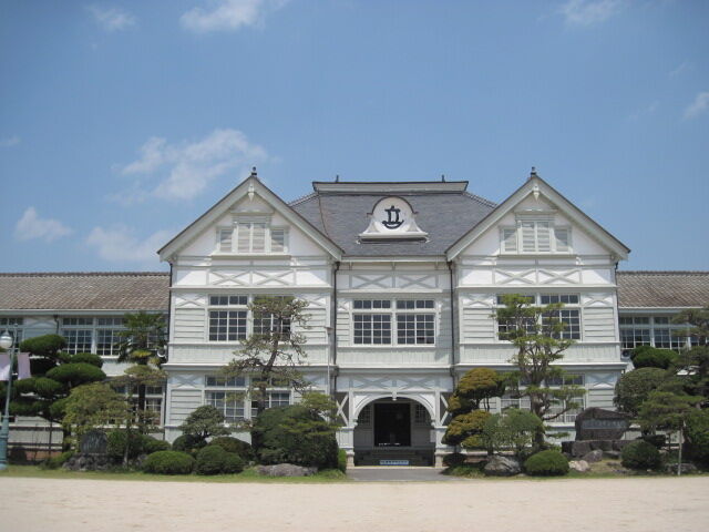 昭和25年の建築。校庭に二宮金次郎の石像が立っていた。もとは銅像だったが、戦時中に金属供出されてしまったそうだ。