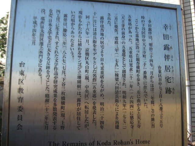 浅草駅(つくばエクスプレス)・・・感応稲荷・・・日輪寺・・・天獄院・・・日枝神社・・・海禅寺・・・曹源寺(かっぱ寺)・・・妙音寺・・・誓教寺・・・新御徒町駅(都営大江戸線)→飯田橋駅(地下鉄東西線)→九段下駅・・・蕃書調所跡・九段坂・・・筑土神社・・中坂・・・九段下駅(地下鉄東西線)→早稲田駅・・・穴八幡宮・・大福寺・・・宝泉寺・・・早稲田駅(東西線)→高田馬場駅・・・清水川橋(神田川)・・・東山藤稲荷神社・・・おとめ山公園・・・高田馬場駅(東西線)→中野駅・・・城山公園・・・中野駅(JR中央線)→神田駅(JR山手線)→日暮里駅・・紅葉坂・・・天王寺・・・幸田露伴旧宅跡・・谷中霊園・・織田完之の墓・・・五重塔跡・・・御隠殿坂・・(JR跨線橋)・・・御隠殿跡(根岸薬師)・・・羽二重団子・善性寺・・・日暮里駅